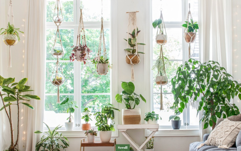 Chậu hoa, cây handmade treo tường trong phòng khách