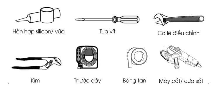 • Chuẩn bị trước khi lắp đặt nhà vệ sinh là bước quan trọng để đảm bảo hiệu quả trong quá trình thực hiện. Cần chuẩn bị một số dụng cụ như cờ lê, kìm, tuốc nơ vít, thước dây, mũi khoan, băng cao su, búa, băng keo silicon, xi măng trắng và vải hoặc khăn mềm.
