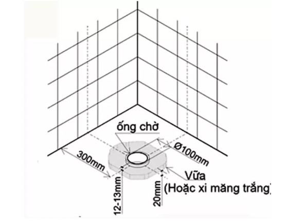 Thông thường, đường kính của ống chờ là Φ90 hoặc Φ100. Khoảng cách từ đường ống đến tường tối thiểu phải là 300mm. Nếu đường ống chờ quá cao so với mặt đất, chúng ta sẽ cần cắt ngắn hơn để thuận tiện cho quá trình lắp đặt.