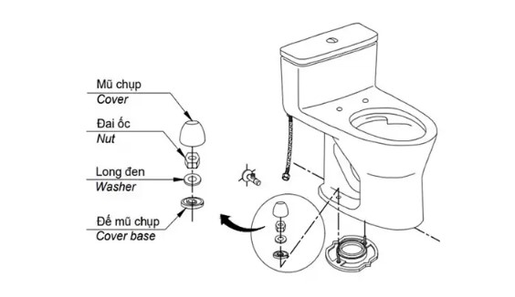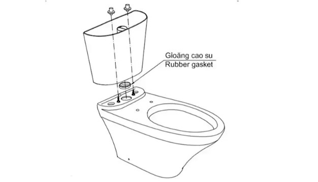 Sau khi lắp các phụ kiện vào bồn nước, chúng ta đặt bồn nước vào vị trí bồn cầu, dùng bu lông, ốc vít siết chặt để bồn nước ở vị trí cố định và cân bằng trên bàn